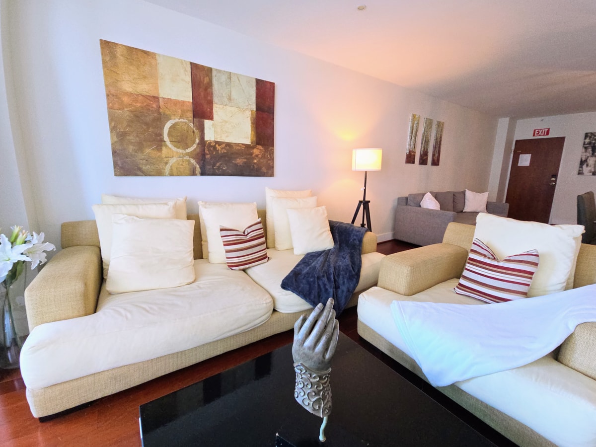 Welcome to our expansive 1-bedroom unit designed for comfort and relaxation. The bedroom features a cozy king size bed, while the second room includes a full bed, perfect for accommodating family or friends. The living room is equipped with a comfortable sofabed for additional guests. Enjoy the fully equipped kitchen for home-cooked meals, and unwind in the spacious living area, making this the perfect retreat for your stay.